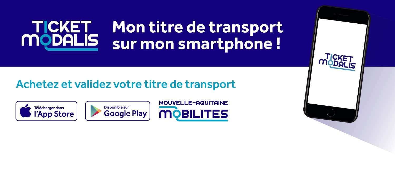 Suite au vote à l'unanimité du Comité Syndical du 6 mai 2020, Nouvelle-Aquitaine Mobilités lance le Ticket Modalis sur mobile, disponible dès aujourd'hui sur les stores Android et iOS.