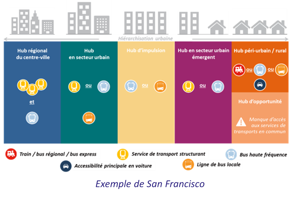Lors de l’étape 1, le bureau d’études ARCADIS, titulaire du marché, a analysé et comparé des démarches "hubs" déjà initiées par des collectivités en France et à l’étranger (Marseille, GPS&O, Plaine de l’Ain, Pays du Lumbres, San Francisco et Flandres). Il a également procédé à plusieurs entretiens avec des fournisseurs de services (abris vélos sécurisés, bornes de recharge électrique, bornes information voyageur, autopartage, P+r…).